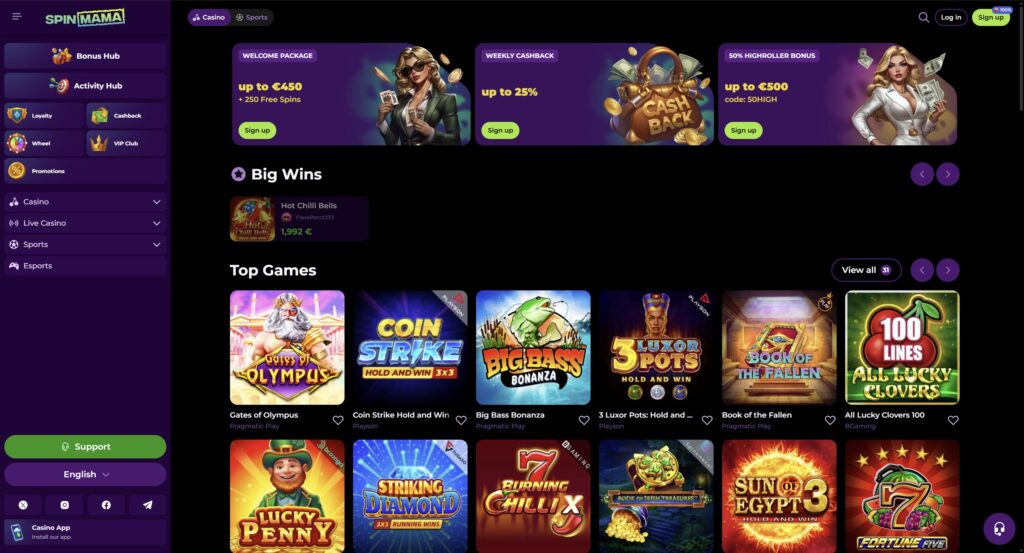SpinMama es un casino online lanzado en 2025, que ofrece más de 2000 juegos, entre los que se incluyen máquinas tragaperras, crupieres en vivo y apuestas deportivas. Con licencia de Curazao, acepta criptomonedas, ofrece premios VIP y un servicio de atención al cliente las 24 horas del día. Los nuevos jugadores se benefician de un bono sin depósito de 20 € o 50 tiradas gratis mediante un código promocional.
