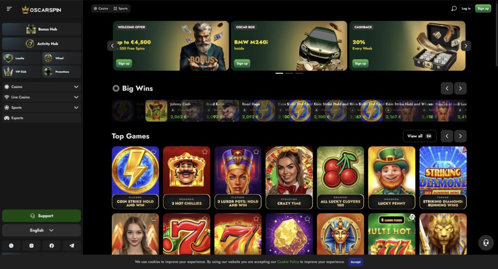 OscarSpin es un casino en línea lanzado en septiembre de 2024 por Rossobash S.R.L. (Costa Rica). Con licencia de Curazao, ofrece 1500 € + 250 tiradas gratis, juegos de mesa, máquinas tragamonedas y crupieres en vivo. Modo demo gratuito, asistencia multilingüe y pagos seguros mediante criptomonedas.
