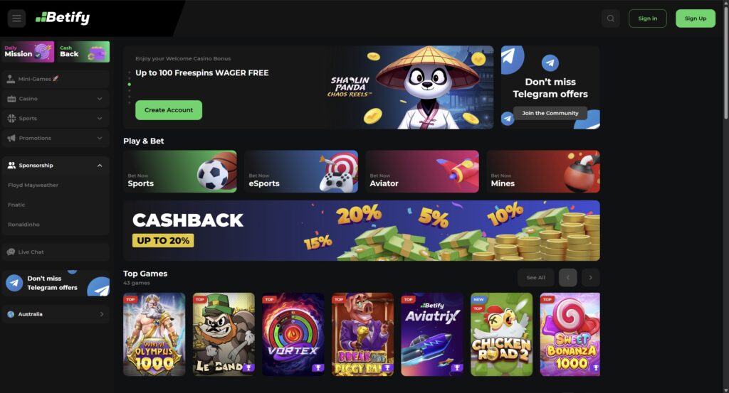 Betify atrae con su generoso bono de bienvenida y su programa VIP con reembolso semanal. Ideal para los aficionados al deporte y al casino, requiere sin embargo un wager x30 y no ofrece bonos gratuitos sin código promocional. Los juegos en vivo siguen siendo limitados en comparación con la competencia.