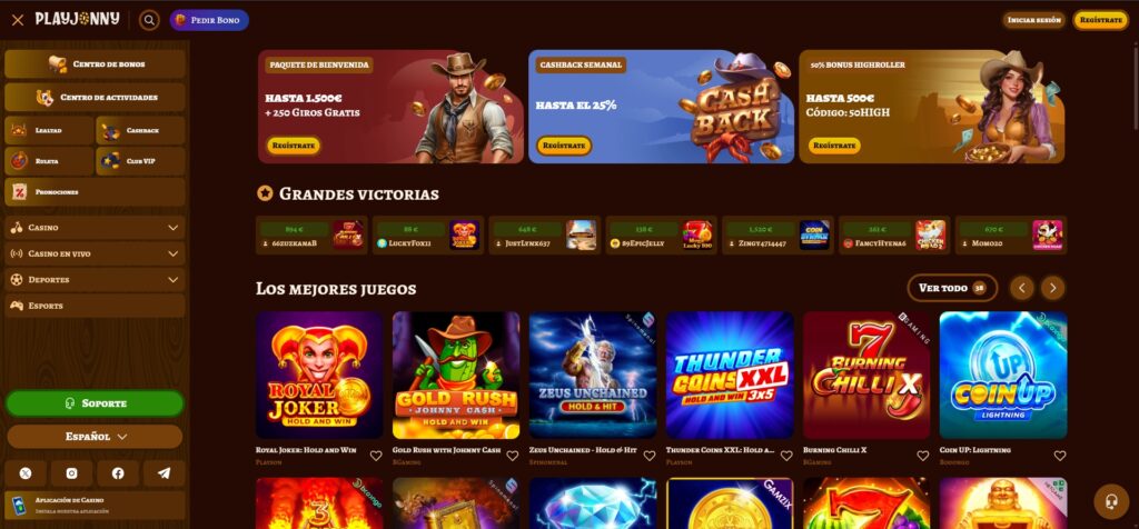 Playjonny es un casino en línea lanzado en 2025 por Interdesoft ltd., regulado por Curazao. Ofrece juegos como ruleta, blackjack, máquinas tragamonedas y casino en vivo. Los nuevos jugadores reciben 50 tiradas gratis sin depósito (código EQUI50) con un bono de bienvenida de hasta 1500 € en los primeros depósitos.